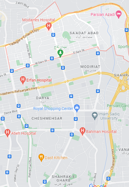 تهران – سعادت آباد – خیابان 35 متری شرقی – پلاک 68 – واحد 6 – کدپستی 1998813877